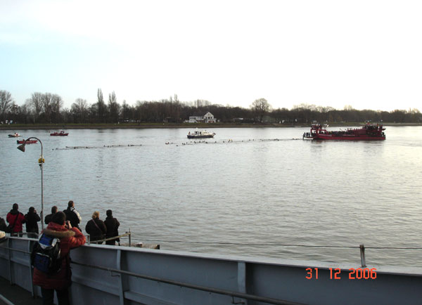und Gesellschaft ans Rheinufer gekommen, um dem zu dieser Jahreszeit ungewöhnlichen