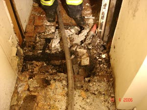 durchgeführt, um ein erneutes Auflodern des Brandes in den zahlreichen Hohlräumen