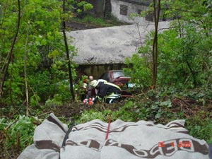eingeklemmt und glücklicherweise nur leicht verletzt, konnten aber aus eigener