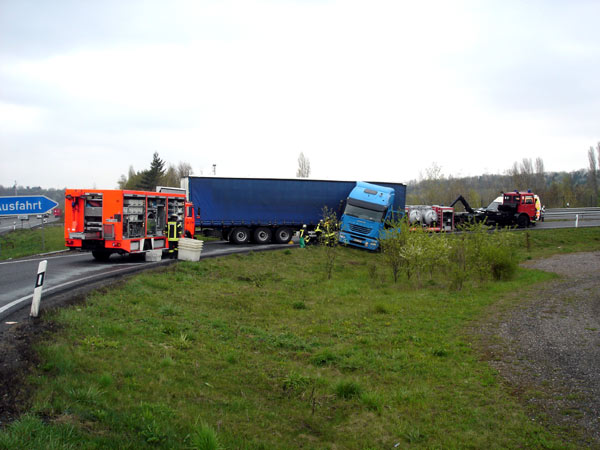 12.04.2010- Aus Lastzug läuft nach Unfall Diesel aus