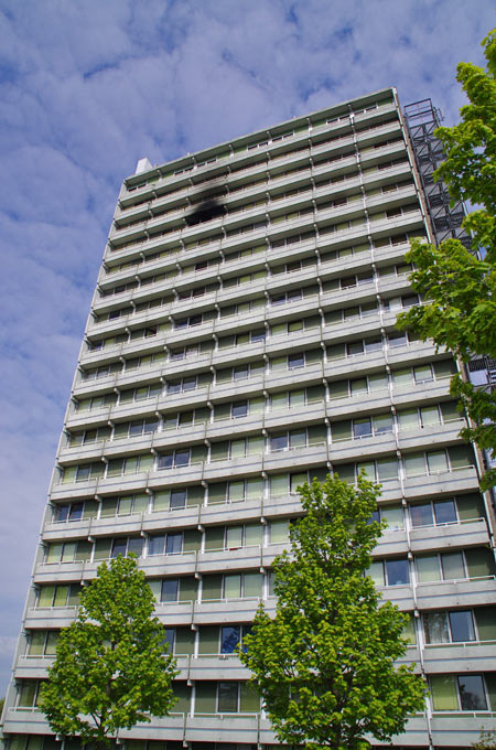 Am Samstag, den 16.04.2011, wurde die Feuerwehr zu einem Wohnungsbrand im 14. OG eines Wohnhauses in die Hechtsheimer Straße gerufen. Bereits auf der Anfahrt der Einsatzkräfte wurde von der Leitstelle mitgeteilt, dass ein Bewohner aus dem Gebäude gesprungen ist.