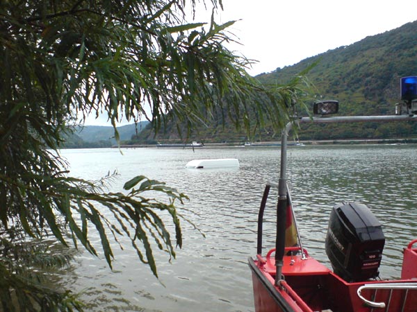 Am 13.08.2009 wurde gegen 06:30 Uhr durch einen Passanten ein Transporter im Rhein bei Bacharach (Stromkilometer 542,2 km) gesichtet. Unmittelbar nach Bekanntwerden der Information in der Feuerwehrleitstelle Mainz wurde die Freiwillige Feuerwehr Bacharach alarmiert und zur Einsatzstelle beordert. Nach Erkundung durch den örtlichen Wehrführer wurde die Tauchergruppe der Feuerwehr Mainz angefordert, die im Rahmen der überörtlichen Hilfe zum Einsatz kam.
