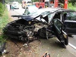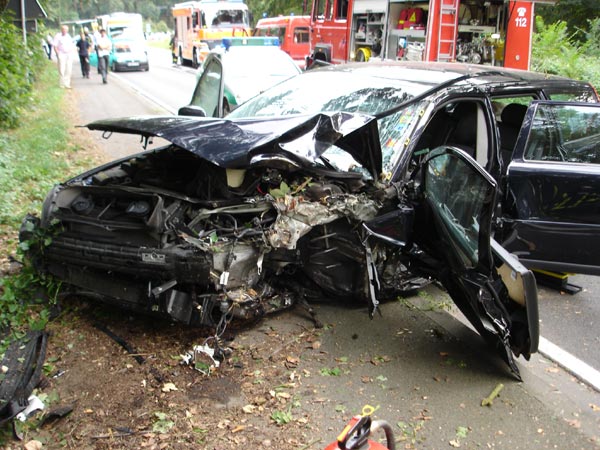 Am 09.08.2009 gegen 18:00 Uhr wurde die Feuerwehr zu einem schweren Verkehrsunfall auf der L 422 in der Nähe des Schloß Waldthausen gerufen. Aus unbekannter Ursache war ein PKW von der Fahrbahn abgekommen und gegen einen Baum geprallt. Beim Eintreffen der Feuerwehr an der Unfallstelle wurde der Fahrer bereits vom Notarzt und Rettungsdienst versorgt. Die Einheiten der Feuerwehren aus Budenheim und Mainz stellten den Brandschutz an der Unfallstelle sicher und schalteten das Unfallfarzeug stromlos. Bei der Personenrettung unterstützte die Feuerwehr den Rettungsdienst, technisches Rettungsgerät musste nicht eingesetzt werden. Die Höhe des Sachschadens wird noch ermittelt.