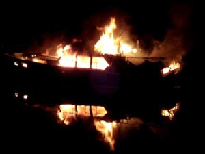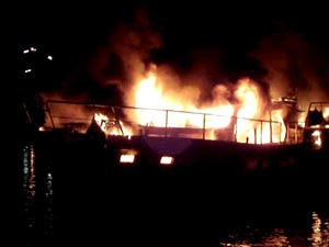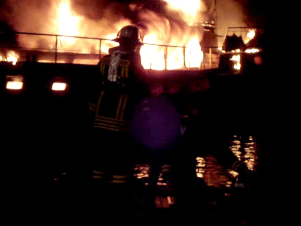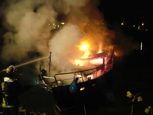 Am Sonntag kurz nach Mitternacht wurde der Feuerwehrleitstelle der Feuerwehr Mainz ein starker Feuerschein im Industriehafen, Höhe Mühlenstraße, gemeldet. Beim Eintreffen der Einsatzkräfte der beiden Mainzer Feuerwachen der Berufsfeuerwehr, der Freiwilligen Feuerwehr Mainz- Stadt, dem Feuerlöschboot und den Rettungsdiensten brannte ein ca. 15,60 Meter langes Hausboot in voller Ausdehnung. Die Flammen drohten schon auf die benachbarten Boote überzugreifen.