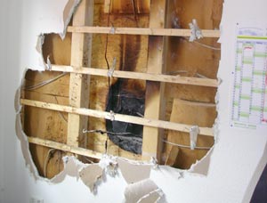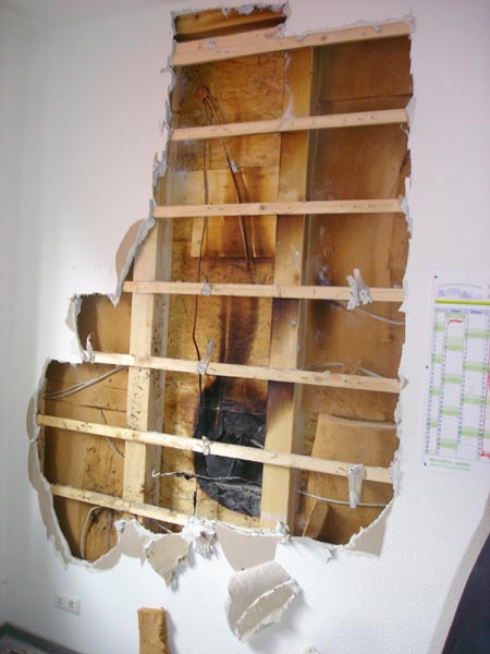 Fläche der Aussenfassade gewaltsam geöffnet werden.