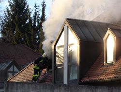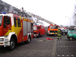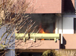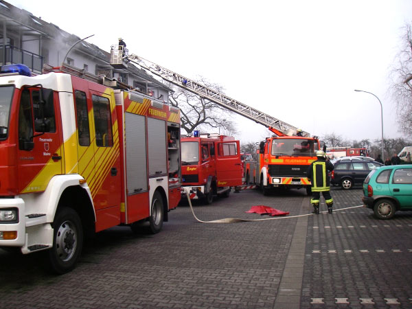 Am Mittwoch, 18.02.09 wurde die Feuerwehr Mainz um 8:24 Uhr zu einem Gebäudebrand in der Bebelstraße/Ecke Kaninchenpfad in Mainz-Bretzenheim alarmiert. Nach wenigen Minuten waren die ersten Einheiten der Berufsfeuerwehr vor Ort. Dichter Rauch drang bereits unter den Dachziegeln eines Mehrfamilienhauses hervor. In dem Haus mit vier Wohneinheiten war es aus bislang ungeklärter Ursache zu einem Brand im Obergeschoss gekommen und hatte bereits auf den Dachstuhl übergegriffen. Die Feuerwehr verschaffte sich gewaltsam Zugang über die Haustür und versuchte parallel eine Brandbekämpfung über das Fenster einer Dachgaube.