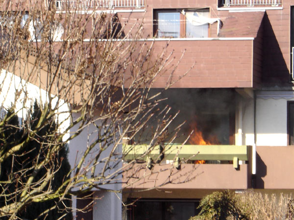 Die Kräfte trafen nur kurze Zeit später an der Einsatzstelle ein und konnten dort auf dem Balkon im 1. OG eines Mehrfamilienhauses einen brennenden Wäschetrockner erkennen. Die Bewohner hatten den Trockner mittlerweile selbst auf den Balkon geschafft! Dort wurde er nun von der Feuerwehr mit Hilfe der Drehleiter und einem Wenderohr sowie zusätzlich über die Wohnung durch einen Trupp mit einer Kübelspritze gelöscht. Die Bewohner blieben unverletzt. Außer dem defekten Trockner entstand nur geringer Sachschaden.