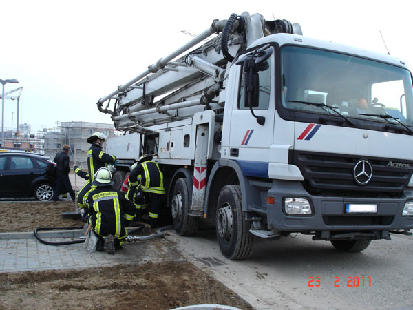 Ecke Gonsbachblick alarmiert. Dort hatte sich ein LKW (Betonpumpenfahrzeug) den