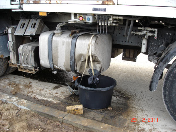 vom beschädigten Fahrzeugtank in den unbeschädigten Zusatztank des LKWs