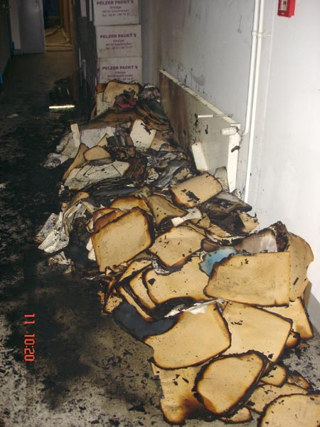 die gepackten Aktenkartons im Flur zwischengelagert wurden. Zur Brandursache konnte