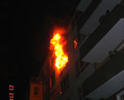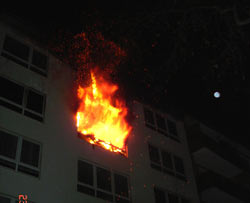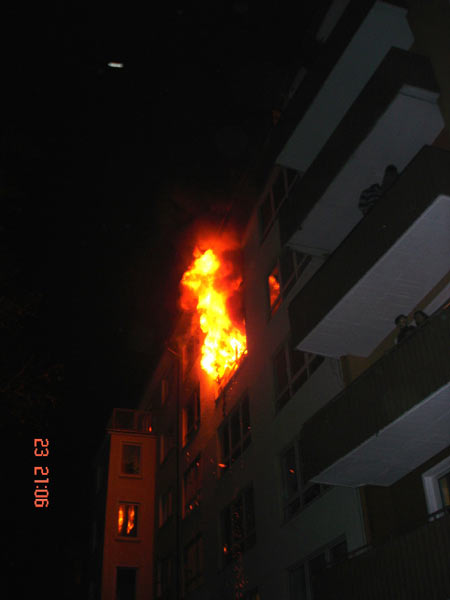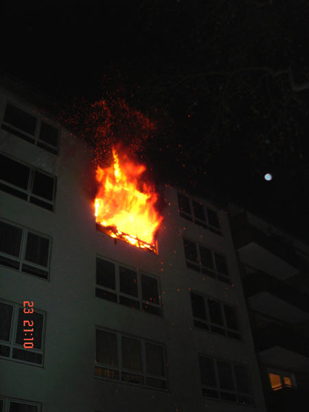 Kurz vor 21:00 Uhr wurde am 23.01.08 die Feuerwehr in die Hindenburgstraße gerufen. Dort brannte in einem mehrgeschossigen Haus eine Wohnung im vierten Obergeschoss. Als die Feuerwehr an der Einsatzstelle ankam, schlugen Flammen aus der Brandwohnung. Die meisten Bewohner des Hauses, darunter auch die Frau aus der Brandwohnung, konnten sich noch vor Eintreffen der Feuerwehr aus dem Haus retten. Der Brand in der Wohnung war so intensiv, dass die Flammen in den Treppenraum schlugen. Die Feuerwehr rückte auf Grund der eingegangenen Meldungen direkt mit zwei Löschzügen und der Freiwilligen Feuerwehr Mainz-Innenstadt aus. Gleich zwei Trupps der Feuerwehr drangen mit Atemschutzgeräten und Feuerwehrschläuchen in das Gebäude vor. Während ein Trupp den Brand bekämpfte, konnte der zweite Trupp aus einer Wohnung im 5. Obergeschoss noch eine Bewohnerin retten. Die Frau aus der Brandwohnung und die Frau aus dem 5. Obergeschoss wurden durch den Rettungsdienst in die Uniklinik gebracht, da beide Rauch eingeatmet hatten. Um 21:16 Uhr war das Feuer soweit unter Kontrolle, dass nur noch einzelne Brandnester nachgelöscht werden mussten. Aufgrund des ausgedehnten Brandes dauerten die Nachlöscharbeiten bis spät in die Nacht. Durch den starken Brandrauch bleiben die Wohnungen im 4. und 5. Obergeschoss, sowie im Dachgeschoss zunächst unbewohnbar. Alle anderen Bewohner konnten noch am Abend in ihre Wohnungen zurück. Von Seiten der Feuerwehr wird der Schaden auf über 100.000,- € geschätzt. Die Polizei hat die Ermittlungen zur Brandursache aufgenommen.