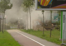von 100mm Durchmesser angebohrt und beschädigt. Das Gas strömte mit