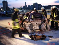 die Feuerwehr zu einem Verkehrsunfall auf die A 60 Höhe Weisenauer Brücke