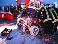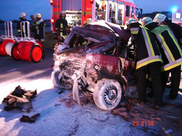 Fahrerin in ihrem PKW bereits vom Rettungsdienst versorgt. Die Rettung mit hydraulischer