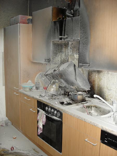 Als die Feuerwehrmänner am Einsatzort eintrafen, war die Wohnung völlig verraucht. Geschützt durch schweren Atemschutz drangen die Einsatzkräfte zum Brandherd vor und mussten nur noch Nachlöscharbeiten durchführen. Mit Hilfe eines Hochleistungslüfters wurde die im Erdgeschoss liegende Wohnung anschließend entraucht. Durch den Brandrauch und den Rußniederschlag wurde die Wohnung allerdings unbewohnbar. Der Ehemann, seine Frau und die zwei Kinder können zum Glück bei Freunden übernachten.