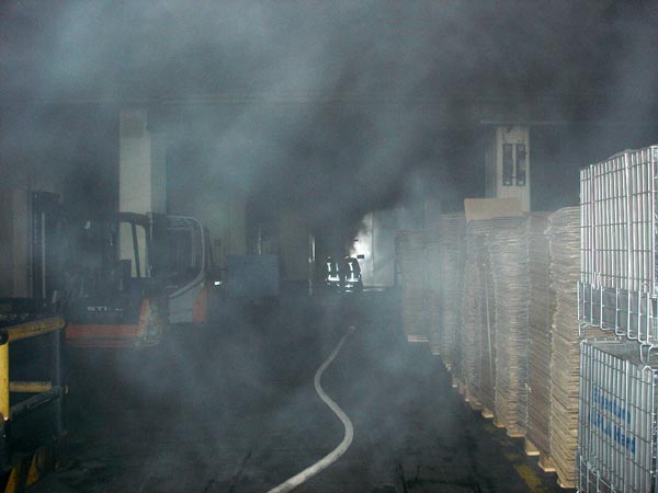 Um 20:19 Uhr löste die automatische Brandmeldeanlage der Firma Werner & Mertz aus und alarmierte die Kräfte der Berufsfeuerwehr Mainz. Bereits während der Anfahrt zu dem Industriebetrieb konnte eine starke Rauchentwicklung über dem Werksgelände ausgemacht werden. Durch den Einsatzleiter wurde daraufhin schon während der Anfahrt die Alarmstufe erhöht und weitere Kräfte nachgefordert. Vor Ort brannte eine Lagerhalle beim Eintreffen der ersten Kräfte bereits in voller Ausdehnung. Eine Brandausbreitung auf weitere Werksteile war zu befürchten. Sofort wurde durch die Feuerwehr Mainz, unterstützt durch die Betriebsfeuerwehr Werner & Mertz, ein umfassender Löschangriff gestartet. Hierzu wurden 2 B-Rohre, ein Wenderohr über eine Drehleiter und zwei C-Rohre, teilweise unter schweren Atemschutz im Innengriff, eingesetzt. Der Einsatz dieser Rohre wurde im weiteren Verlauf durch den Einsatz von vier Schaumrohren unterstützt, damit das Brandgut mit Löschschaum abgedeckt werden kann. Aufgrund der hohen Brandintensität kam es mehrmals zu Rückzündungen in der Lagerhalle, so dass mit Unterstützung der Betriebsfeuerwehr die gesamte Halle mit Leichtschaum geflutet wurde. Dies führte dann zu dem gewünschten Löscherfolg, da nun auch die tief in Brandgut sitzenden Glutnester von der Sauerstoffzufuhr abgeschnitten waren. Da in der Lagerhalle neben Kartonagen auch Verpackungsmaterialen aus Kunststoff brannten, wurden von der Feuerwehr bereits in der Anfangphase des Einsatzes Messungen an verschiedenen Punkten des Mainzer Stadtgebietes durchgeführt. Glücklicherweise konnten außerhalb des Werksgeländes keine Schadstoffe in der Luft nachgewiesen werden. Auch der Betrieb der Deutschen Bahn über die Kaiserbrücke war, bis auf eine Sichtbehinderung durch die starke Rauchentwicklung, von dem Einsatz nicht betroffen.