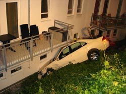Am Samstag stieß aus noch ungeklärter Ursache gegen 22:20 Uhr ein PKW in der Wallstraße mit einem entgegenkommenden Taxi zusammen. Der Taxifahrer versuchte noch den Aufprall zu verhindern, kam von der Fahrbahn ab, fuhr einen Zaun um und kam in einer Böschung an einer Hauswand zum Stehen. Ein Motorroller und ein Motorrad, die vor dem Zaun standen, wurden von dem Taxi mitgerissen. An dem anderen PKW riss bei dem Aufprall das linke Vorderrad ab. Das Fahrzeug steiß dann noch gegen einen Baum und ein parkendes Fahrzeug.