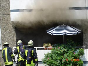 des Hochhauses wahrgenommen und sofort díe Feuerwehr alarmiert. Beim Eintreffen