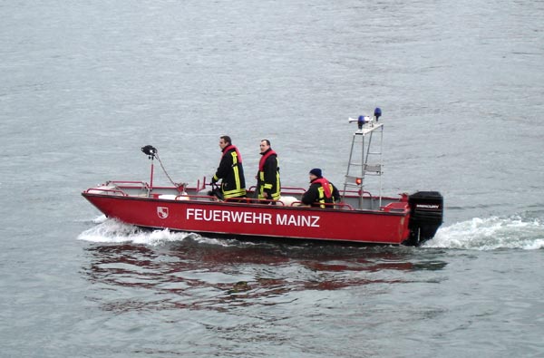 und das Mehrzweckboot aus. Die Freiwilligen Feuerwehren Mombach, Weisenau und