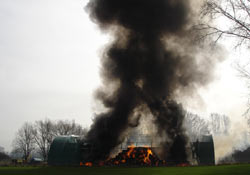 erkennen. Da bei Ankunft der Feuerwehr die Strohballen und die Abdeckplanen bereits