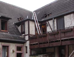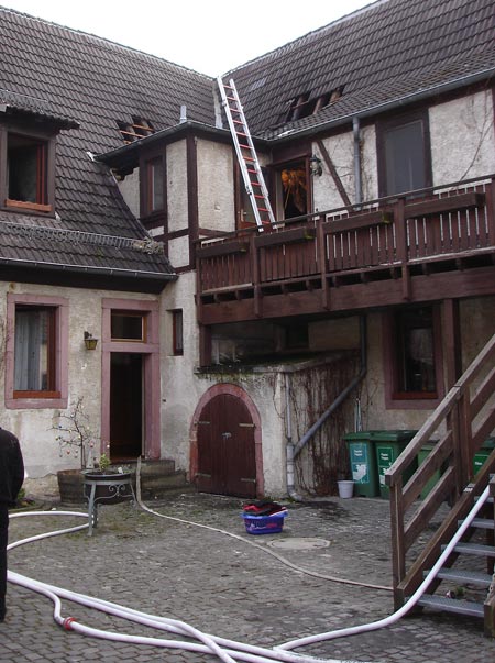 Am 29.03.2009 gegen 15:00 Uhr wurde die Feuerwehr zu einem Brand in die Straße Am Kartäuserhof in Mainz Hechtsheim gerufen. Beim Eintreffen der Feuerwehr an der Einsatzstelle waren keine Personen mehr im Gebäude. Das gesamte Obergeschoss sowie der Dachboden waren stark verqualmt. Unter Verwendung von Atemschutzgeräten und drei C-Rohren wurde die Brandbekämpfung im Innenangriff aufgenommen.