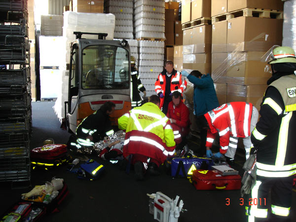 03.03.2011- Mann unter Gabelstapler eingeklemmt