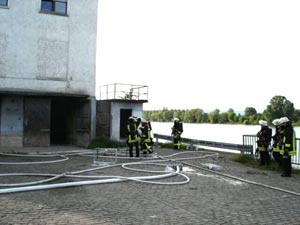 voller Ausdehnung und der Brand drohte auf einen angrenzenden Gewerbebetrieb überzugreifen.