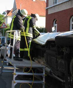 einen hydraulischen Spreizer ein und befreite den augenscheinlich nur leicht verletzten