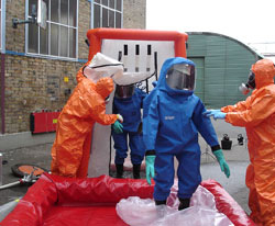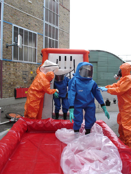 werden konnten. Um die Schutzanzüge der Einsatzkräfte nach Kontakt mit