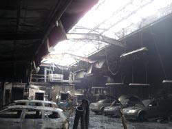 starken Brandrauch von dem benachbarten Gebäude einer Autofirma. Beim Eintreffen
