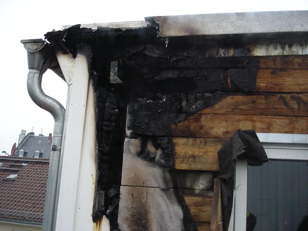 Am Samstagmittag wurde die Berufsfeuerwehr Mainz und die Freiwillige Feuerwehr Innenstadt in die Hindenburgstraße zu einem Gebäudebrand gerufen. Nachbarn hatten im Dachbereich des betroffenen Hauses Flammen und Rauch bemerkt und die Feuerwehr gerufen. Die Feuerwehrmänner drangen mit schwerem Atemschutzgerät in das Dachgeschoss des Hauses vor und wollten die Wohnungstür der betroffenen Wohnung gerade aufbrechen, als deren Besitzer mit dem Schlüssel geeilt kam und aufschließen konnte. Es brannte nicht in der Wohnung, sondern die Holzverkleidung einer Dachgaube im Außenbereich. Die Feuerwehr konnte den Brand mit einem Strahlrohr unter Kontrolle bringen und durch schnelles Eingreifen den Sachschaden minimieren. Da aber bereits Teile der Dachkonstruktion durch die Brandzehrung stark angegriffen waren, wird sich der Sachschaden im Bereich zwischen 10.000 und 15.000 Euro bewegen. Zum Zeitpunkt des Brandes waren die Besitzer der Wohnung nicht zuhause und es wurden keine Personen verletzt. Um den Brand vollständig zu löschen mussten die Wehrmänner noch Teile des Daches und der Verkleidung der Gaube entfernen, da sich das Feuer in die Isolation der Wände und Decke ausgebreitet hatte. Die Polizei ermittelt derzeit, wie es zu dem Brand kommen konnte.