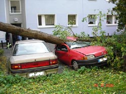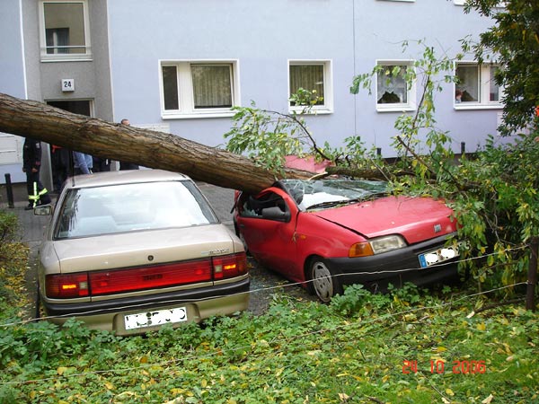 Der Herbst ist da und mit ihm kommen auch Stürme und starke Windböen. Die ersten Herbststürme sorgten am Donnerstag auch im Landkreis Mainz-Bingen und der Stadt Mainz mit Sturmböen der Stärke 9 für Einsätze der Feuerwehr. Insbesondere im Bereich der Neustadt, Mombach, Bretzenheim und Lerchenberg waren größere Schäden zu verzeichnen. Die ersten Notrufmeldungen gingen gegen 9:17 Uhr in der Feuerwehrleitstelle der Feuerwehr Mainz ein und hielten auch den Tag über an. Bis 15:00 Uhr waren im Landkreis Mainz-Bingen 8 und in der Stadt Mainz 25 Einsätze zu verzeichnen. Teilweise wurden Bäume von über 20 Meter Höhe umgerissen und fielen auf PKW. Wie durch ein Wunder wurde bisher keine Person verletzt. Insgesamt wurden 13 PKW zum Teil schwer beschädigt. Zu Verkehrsbehinderung und Verspätungen des öffentlichen Nahverkehrs kam es, da die Feuerwehr in der Schillerstraße Fahnen abhängen mussten. Durch den starken Wind bestand die Gefahr, dass die Fahnenmasten abbrechen. Zeitweise waren die Kräfte der Berufsfeuerwehr beider Feuerwachen und die Freiwilligen Feuerwehren Finthen, Mombach und Ebersheim im Einsatz. Der genaue Sachschaden kann zur Zeit noch nicht ermittelt werden.