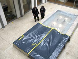 Neben der Abschaltung der Lüftung des Gebäudes führte die Feuerwehr mit einem speziellen Messfahrzeug, unter der Leitung eines Chemikers, entsprechende Messungen durch. Nachdem um 12.24 Uhr der Brunnen luftdicht verschlossen war, konnte Entwarnung gegeben werden.