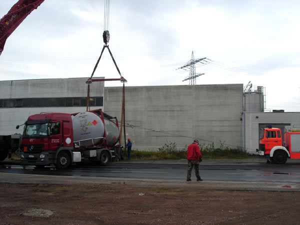 Die Ladung des Tank-Sattelaufliegers bestand aus rund 27.000 Litern einer hochentzündlichen Chemikalie. Die Ladung blieb unversehrt, es traten keinerlei Gefahrstoffe aus. Von den alarmierten Kräften der Feuerwache 2 wurde der Lkw zunächst gegen weiteres Abrutschen gesichert.