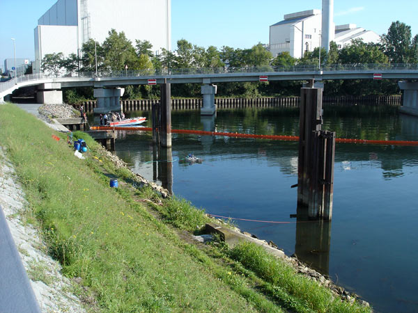 Am Mittwochabend ist aus bislang noch ungeklärter Ursache Öl auf dem Rhein geschwommen. Passanten bemerkten gegen 17.00 Uhr das Öl im Bereich des Winterhafens und verständigten die Feuerwehr. Die Einsatzkräfte fanden eine ca. 200 m² große mit Öl verschmutzte Fläche auf dem Wasser im Bereich der Drehbrücke des Winterhafens vor. Die Fläche roch stark nach Dieselkraftstoff. Die Feuerwehr brachte nach Rücksprache mit dem Umweltamt der Stadt Mainz sogenannte Öl-Saugsperren auf dem Wasser aus um damit das Öl von der Wasseroberfläche zu entfernen. Der Verursacher der Verschmutzung ist derzeit noch nicht bekannt. Augenzeugenberichten nach kam das Öl aber vom Rhein und wurde durch die Nährströmung in das Hafenbecken des Winterhafens gedrückt. Die Wasserschutzpolizei hat die Ermittlungen aufgenommen. Für die Feuerwehr war der Einsatz nach zwei Stunden beendet.
