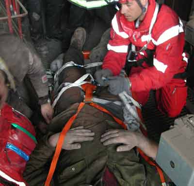 durch die Luke gerettet. Dort wurde der Verletzte von dem bereitstehenden Notarzt