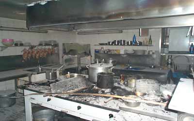 in einem Restaurant zu einem Feuer gekommen war, welches offensichtlich bereits