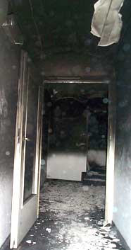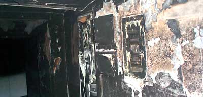 in Brand geraten. Nach den Löscharbeiten wurde das Gebäude mit einem
