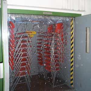 wurde der Brandschutt ins Freie gebracht und das Gebäude maschinell entraucht.