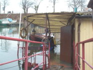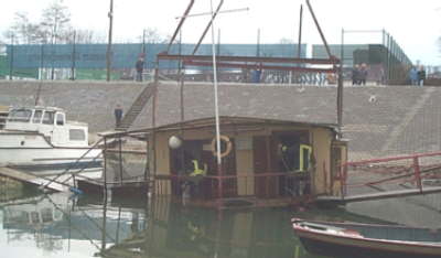 Um 17.26 Uhr der nächste Einsatz. Das Vereinsheim des Angelsportvereins im Winterhafen, eine Art Hausboot, drohte zu sinken. Daraufhin wurde die Freiwillige Feuerwehr Weisenau mit dem Feuerwehrrettungsboot und der Einsatzleitdienst der Feuerwache 1 alarmiert. Vor Ort wurde festgestellt, dass das Boot bereits auf Grund gelaufen ist. Von den Stadtwerken Abt. Strom musste es vom Stromnetz getrennt werden. Über einen weiteren Einsatz zur Bergung muss noch entschieden werden.