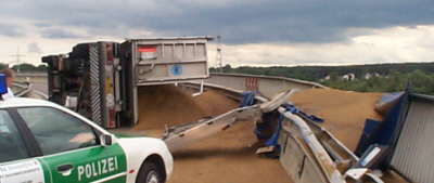 11.06.2002- LKW mit Rapsschrott umgekippt