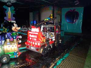 der auf dem Karussell befindliche Feuerwehrwagen konnte die Flammen nicht löschen",