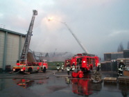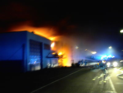 Um 1.50 Uhr am frühen Sonntag morgen wurde die Feuerwehr alarmiert. Auf dem Gelände der Glashütte Budenheim stand aus bisher ungeklärter Ursache eine etwa 40 Meter lange Lagerhalle für Verpackungsmaterial (Kartonagen und Plastikfolie) im Vollbrand. Trotz sofort eingeleiteter massiver Löschmaßnahmen war die Halle nicht mehr zu retten, ein Übergreifen auf andere Gebäude konnte aber abgewehrt und somit ein noch größerer Schaden verhindert werden. Zeitweise waren u.a. vier Drehleitern gleichzeitig im Einsatz, um das Feuer von oben mit Wenderohren einzudämmen und die Nachbargebäude abzuschirmen. Erschwerend kam hinzu, dass die Lagerhalle nur von einer Seite zugänglich war. An die anderen Hallenseiten grenzten andere Gebäude. Der massive Wassereinsatz machte es erforderlich, auch den nahegelegenen Rhein für die Wasserversorgung zu nutzen. Die Freiwillige Feuerwehr Budenheim als örtlich zuständige Wehr war für die Unterstützung der Berufsfeuerwehr und der Freiwilligen Feuerwehren sehr dankbar. Die Zusammenarbeit der Wehren untereinander hat hervorragend funktioniert. Die FF Mainz-Mombach hat während des Einsatzes die Feuerwache 2 personell besetzt.