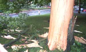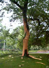 von umgestürzten Bäumen geräumt oder aufgespülte Kanaldeckel