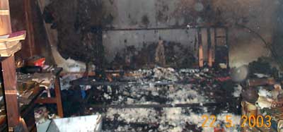 Morgenstunden am 03.05.2003 nahm ein Anwohner im EG einen Brandgeruch wahr. Er