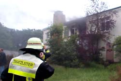 eintraf, drang starker Rauch aus den Kellerfenstern und dem Treppenraum. Vorsorglich