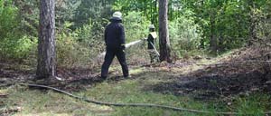 einer Fläche von ca. 50 x 20 Meter Waldbewuchs. Der Brand wurde mit zwei