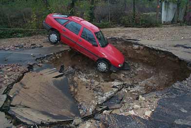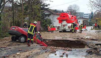 Wassermengen aus und unterspülten die Straße so stark, dass ein Krater