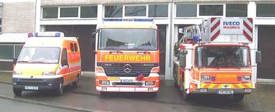 Löschzug der Feuerwache 2 (ELW, HLF, DLK) im Jahr 2002